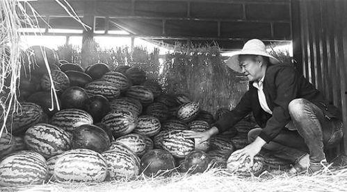“这西瓜真甜啊!”一位农民拿着一块西瓜,开心地吃着。