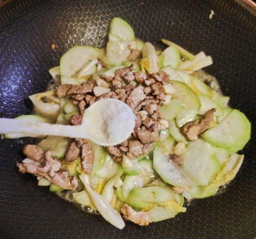 3. 快速翻炒:将肉片炒至变色后,迅速加入瓠瓜片,用大火快速翻炒。这样炒出来的瓠瓜不会出水,口感更加脆爽。